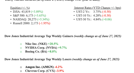 During the holiday-shortened week of June 30 to July 3, 2025, all three major U.S. stock market indexes recorded... Read More
