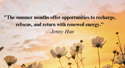 “The summer months offer opportunities to recharge, refocus, and return with renewed energy.” —Jenny Han Read More