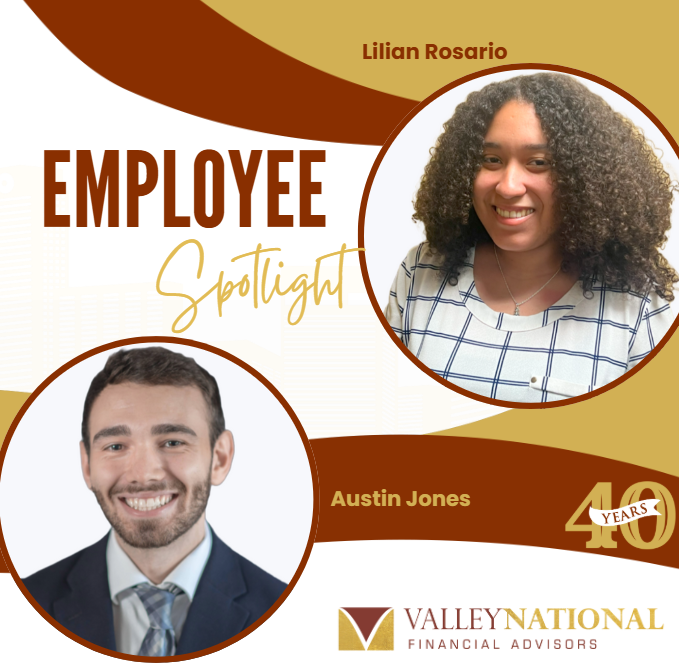 As we commemorate 40 years of service at Valley National Financial Advisors, we celebrate the exceptional people behind our success. This week, we recognize Austin Jones and Lilian Rosario, two outstanding professionals who help shape the client experience at VNFA. Austin and Lilian have been part of the VNFA family for 1 year.